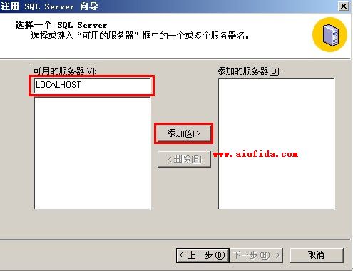 (1)右击“SQL Server组”-选择“新建SQL Server注册”-点击“下一步”-在可用的服务器下输入“LOCALHOST”点击“添加”-依次点击“下一步”-“下一步”-“下一步”-“完成”。如下图所示: